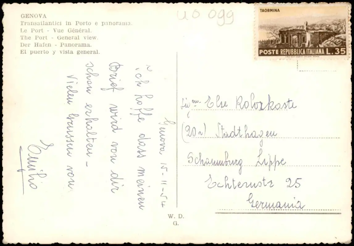 Cartoline Genua Genova (Zena) Dampfer Steamer Transatlantici in Porto 1954