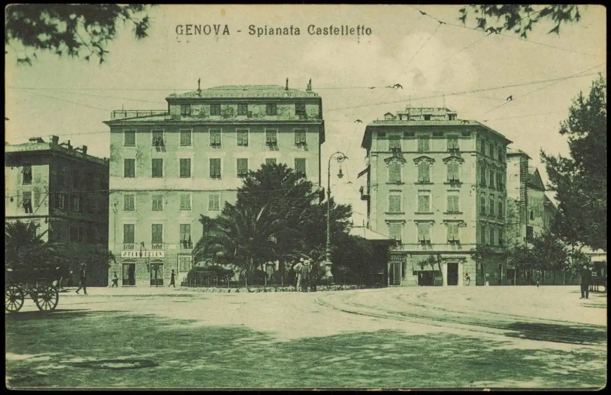 Cartoline Genua Genova (Zena) Straßen-Ansicht Spianata Castelletto 1910