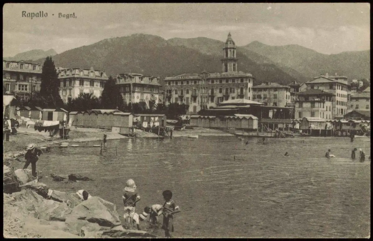 Cartoline Rapallo Panorama-Ansicht Rapallo Bagni, Strand Partie 1910