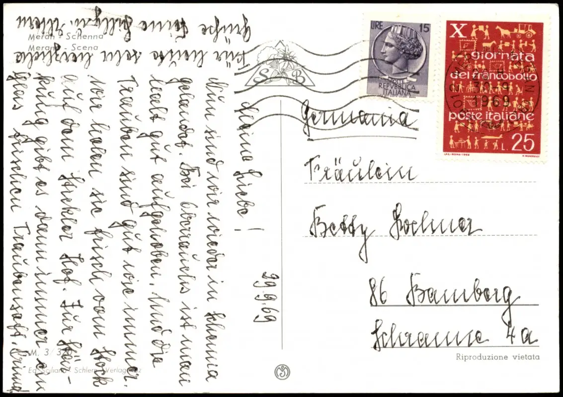 Cartoline Schenna Scena Panorama-Ansicht Merano-Scena 1969