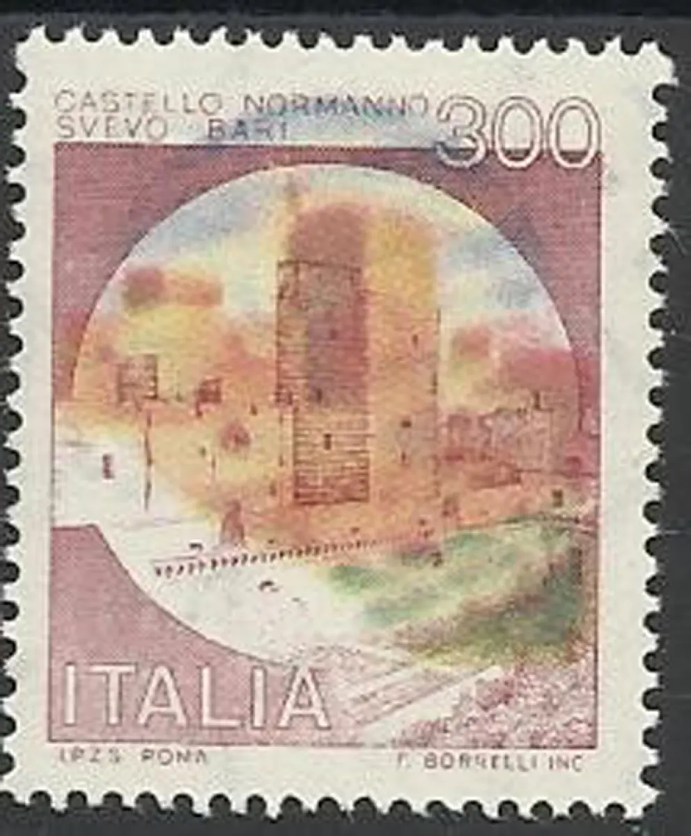 Vollgummi - Castelli Lire 300 Nr. 1518 mit stark nach oben verschobenem Mittelfarbdruck - Ungewöhnliche Nr. 840/5