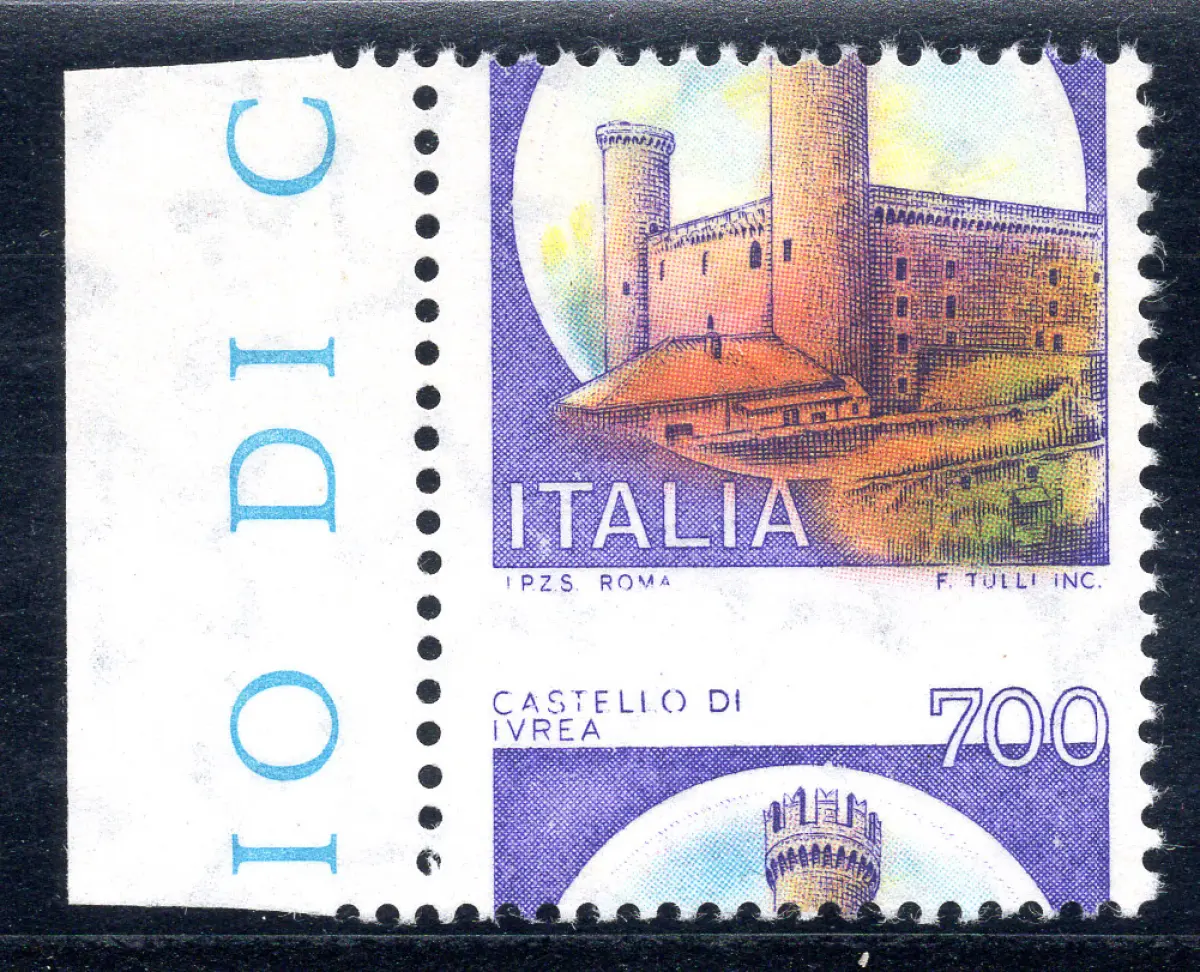 Castelli Lire 700 Sorte verschobene Verzahnung Vollgummi - Castelli Lire 700 Nr. 1524 stark verschobene horizontale Verzahnung 700 nach unten - Seltene Sorten dieses Wertes Cod. 817/13