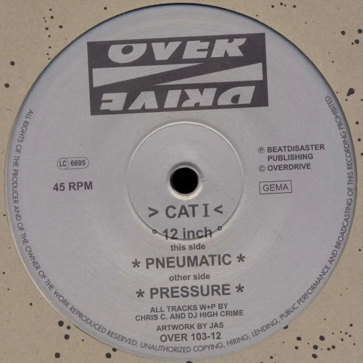 12" Maxi Cat I - Pressure / Pneumatic, Einheitscover der Plattenfirma, Zustand Platte M- Hülle M-; Made in Germany 1997 Over Drive OVER 103-12, Tracks Pressure, Pneumatic