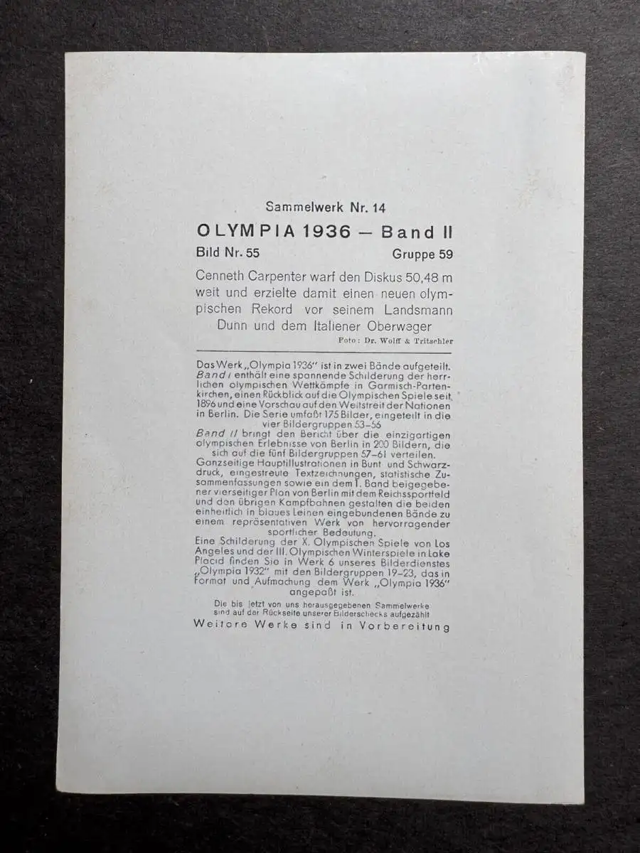 Cenneth Carpenter warf den Diskus 50,48 m weit und erzielte damit einen neuen olympischen Rekord vor seinem Landsmann Dunn und dem Italiener Oberweger