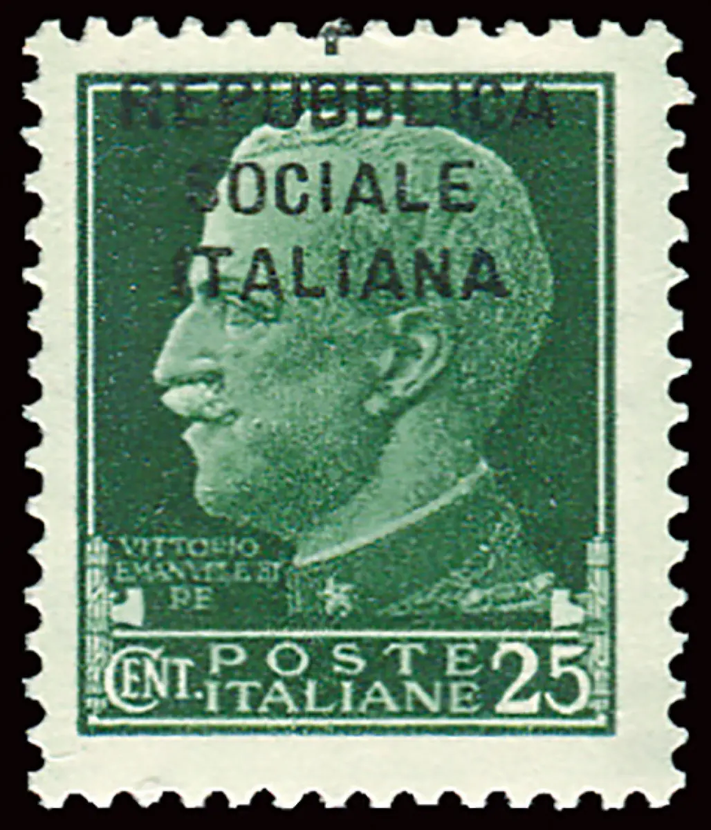 MNH Vollgummi - Cent. 25 n. 491pg schönes Exemplar ohne Band - stammt aus der letzten Zeile eines Blattes mit stark nach oben verschobenem Aufdruck - Ungewöhnlich - Kat. euro 300 Cod. 213/15
