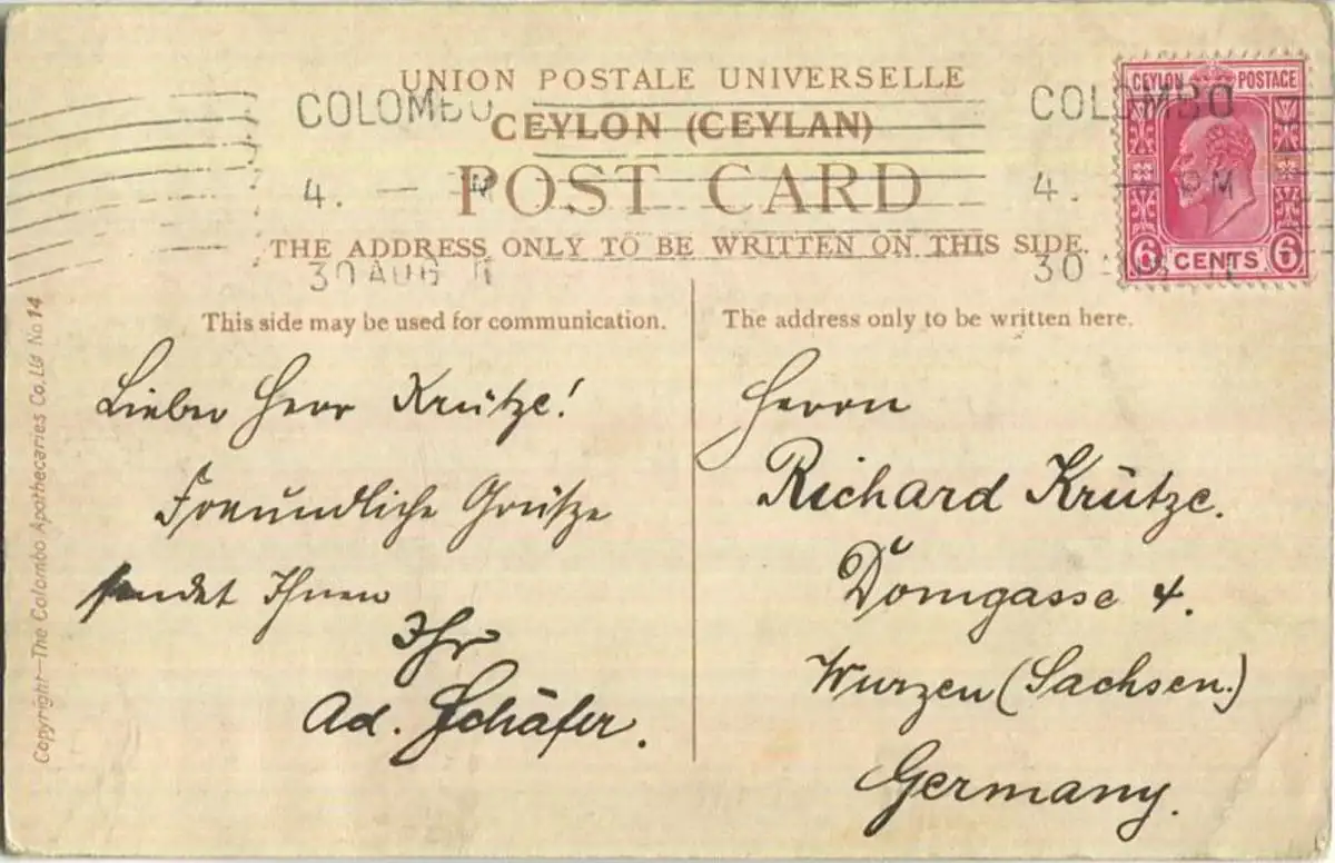 Ceylon - Sri Lanka - Colombo - Pettah - Verlag The Colombo Apothecaries Ltd. - Eckknick unten links (G0073) gel. 1911