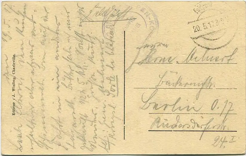 Charleville - Vue prise du Plateau de Berthaucourt - Feldpost - Editeur J. Winling Charleville gel. 1917