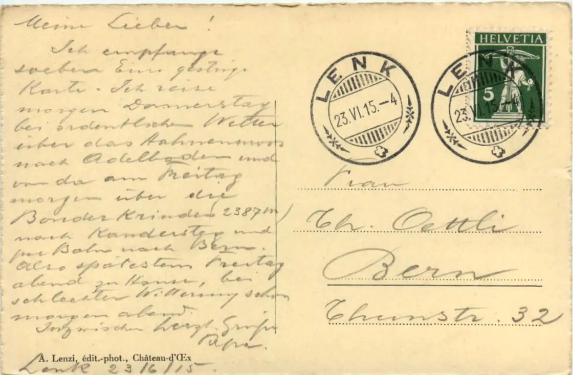 Danke. Alles Bestens. Können Sie mir allenfalls mitteilen, aus welchem Jahr die Postkarte stammt? Besten Dank.