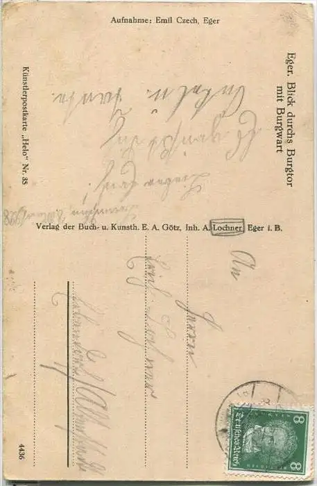 Cheb - Eger - Blick durchs Burgtor - Burgwart - Verlag E. A. Götz Eger i. B. - leichte Gebrauchsspuren (G38191) gel. 1928