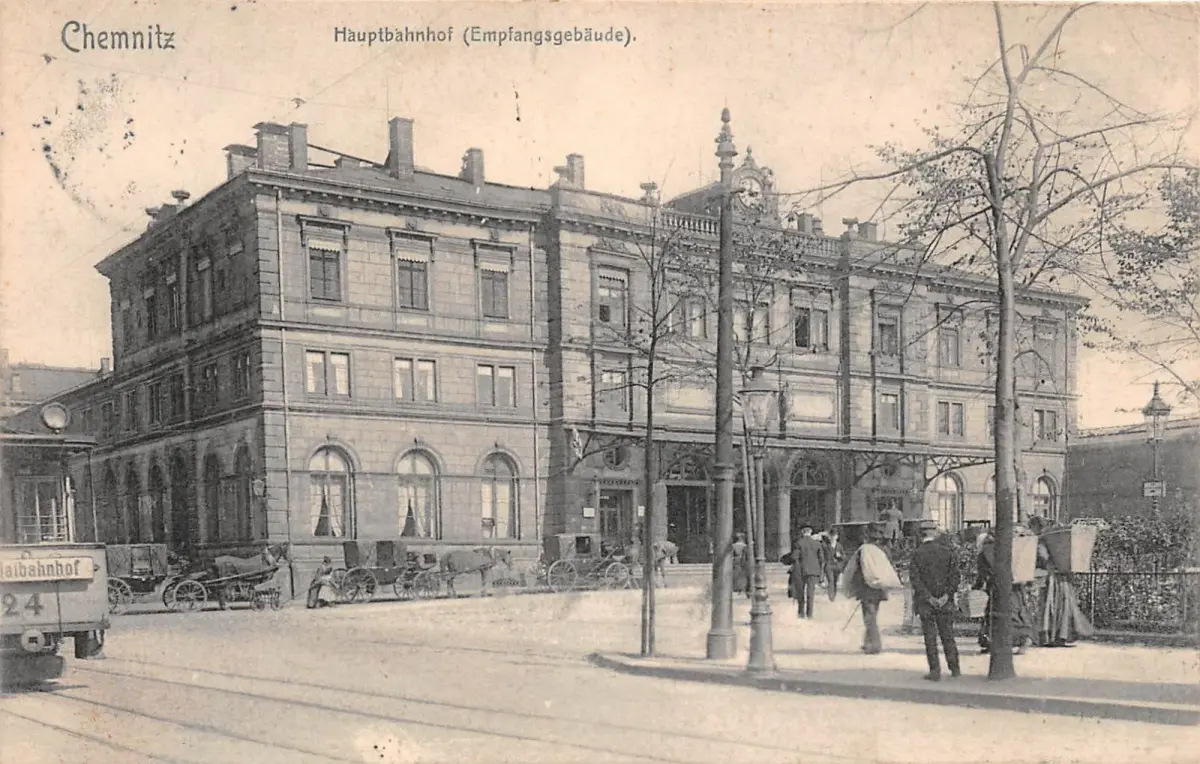 Chemnitz Sachsen Hauptbahnhof Empfangsgebäude Strassenbahn 1906