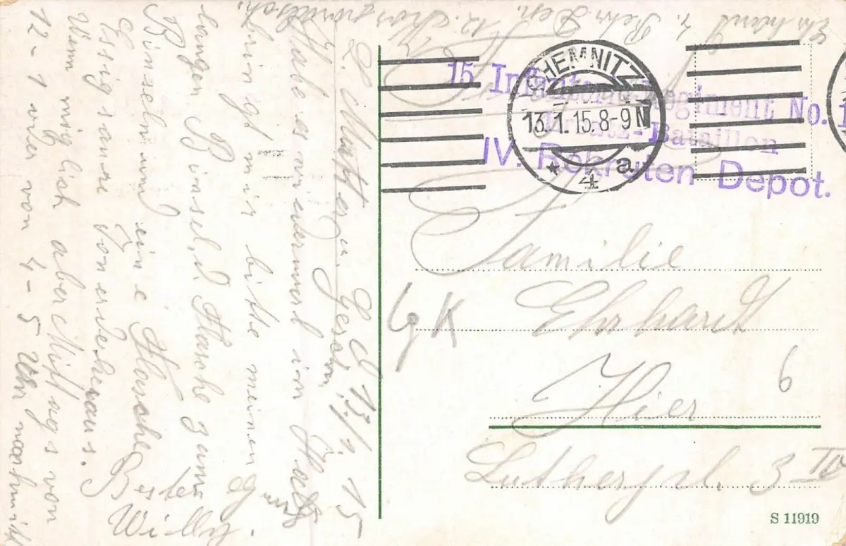 Rückseite: gelaufen 1915 von Chemnitz
