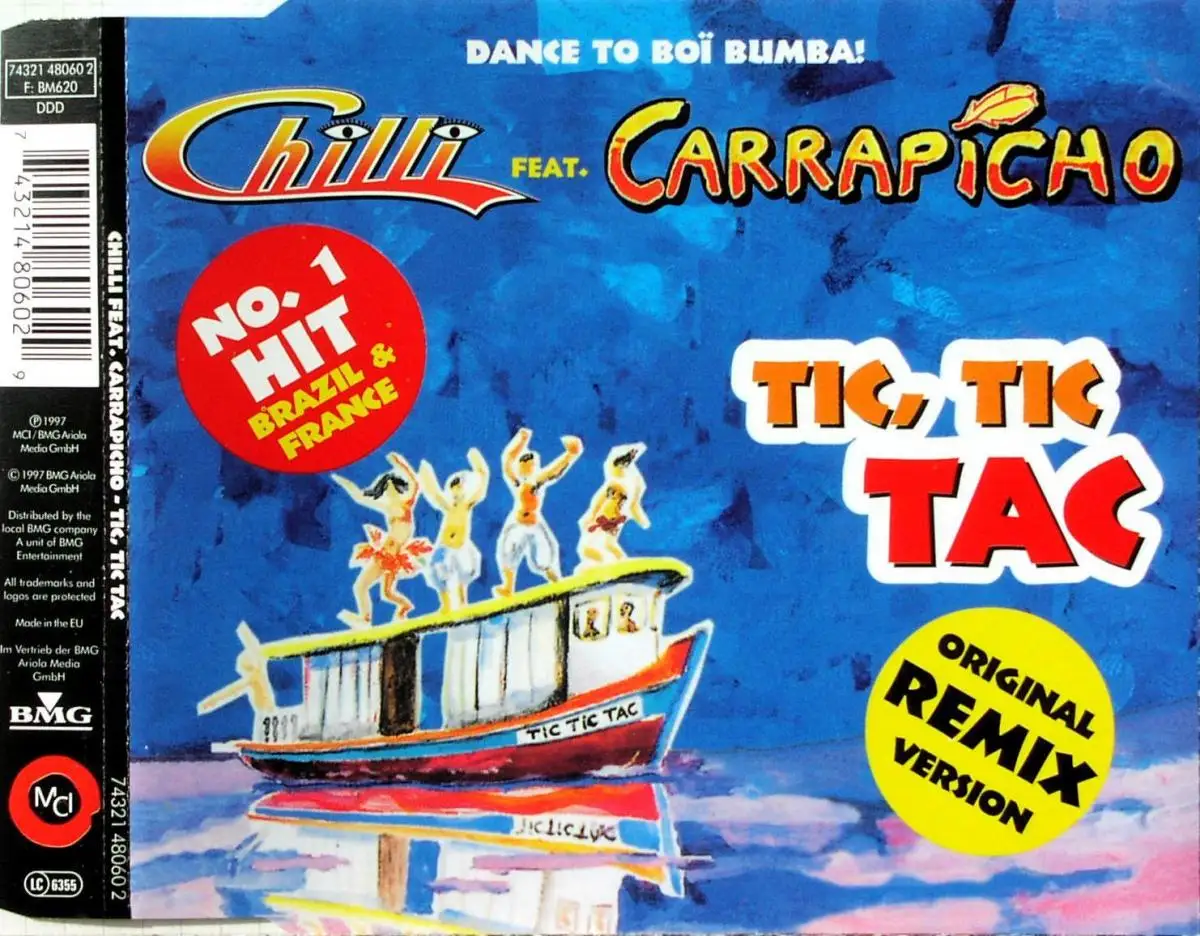 CD Single Chilli feat. Carrapicho - Tic, Tic Tac, Zustand CD VG+ Hülle M-; Made in Germany 1997 MCI 74321 48060 2, Tracks Tic Tic Tac [Radio Edit 1] 3:45, Tic Tic Tac [Radio Edit 2] 3:45, Tic Tic Tac [Club Mix] 6:50, Tic Tic Tac [Copacabana Drive Mix] 6:46