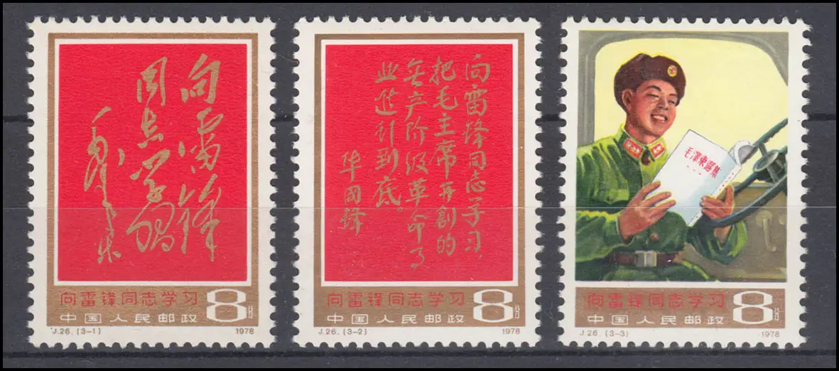 China 1386-1388 Kämpfer Lei Feng, 3 Werte, Satz ** / MNH