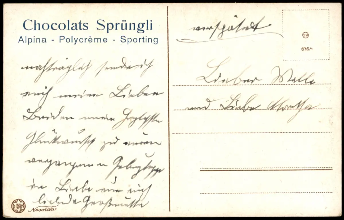 Name: Chocolats Sprüngli Künstlerkarte Mädchen in Trachten-Kleidung