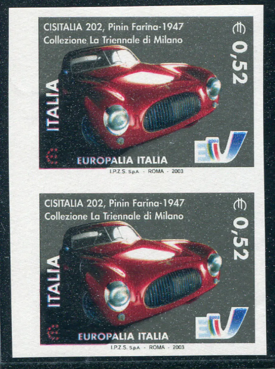 Cisitalia Euro 0,52 Auto Pinin Mehl ungezahnte Sorte Vollgummi - MHN - - - Cisitalia Euro 0,52 Auto Pinin Mehl Nr. 2707 wunderschönes ungezahntes vertikales Paar - Ungewöhnlich Cod. 843/14