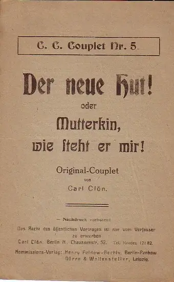 Clön, Carl: Text: 'Der neue Hut oder Mutterkin, wie steht er mir!' Original - Couplet. (= C. C. Couplet Nr. 5).