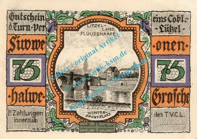 Notgeld Turnverein T.V.C. Coblenz-Lützel , 75 Pfennig Nr.2 : Sieger