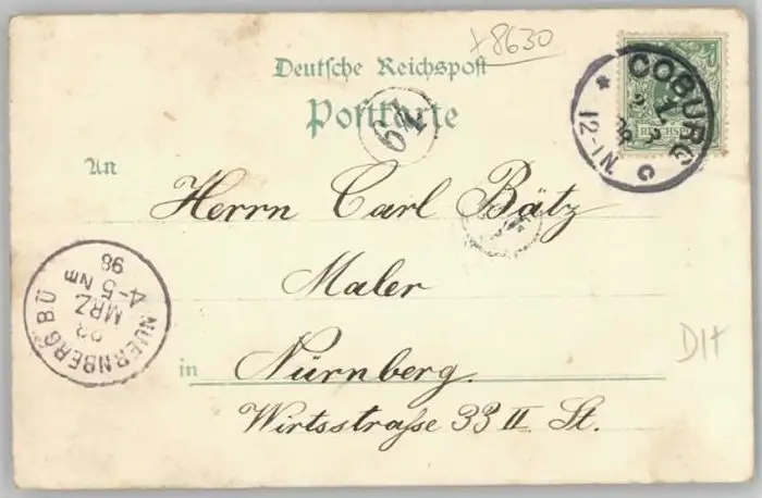 Coburg Coburg x 1898 Coburg postalisch gelaufen 1898 Alte Ansichtskarte Postkarte