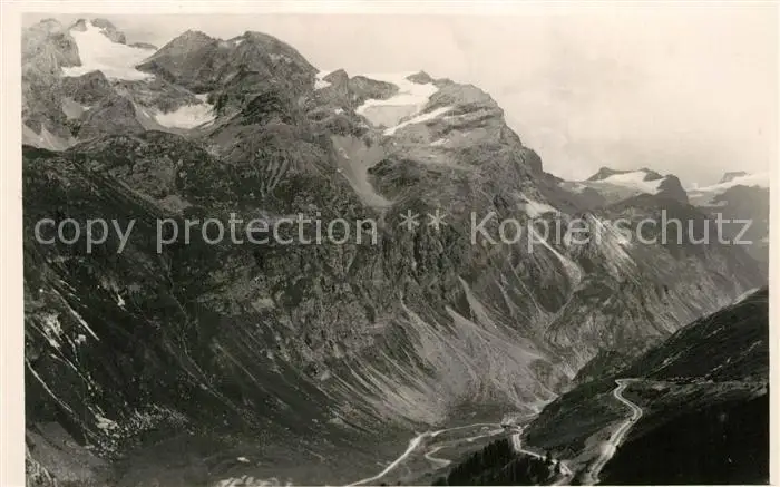 Col_de_l_Iseran Panorama Route de l'Iseran Lacets au départ de Val d'Isère et la Tsanteleina Alpen Col_de_l_Iseran postalisch nicht gelaufen 1921-1965 Erhaltung siehe scans [FriedD77] Frierer