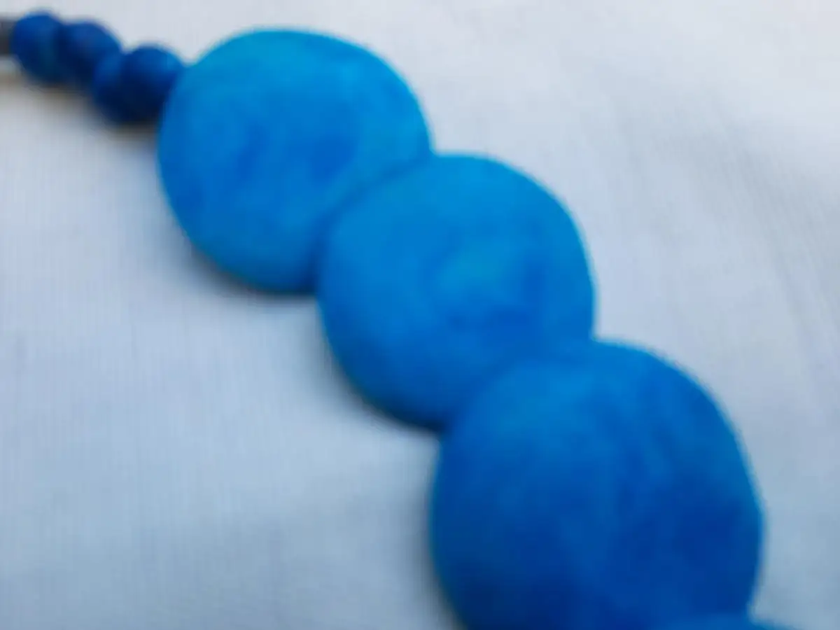 Collier aus 25 - 30 mm grossen Holzscheiben, unregelmäßig türkisblau bemalt