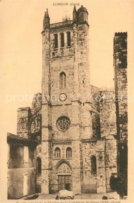 Condom Facade principale et Clocher de la Cathédrale Saint Pierre XVIe siècle Condom postalisch nicht gelaufen 1921-1965 Erhaltung siehe scans [FriedD77] Frierer