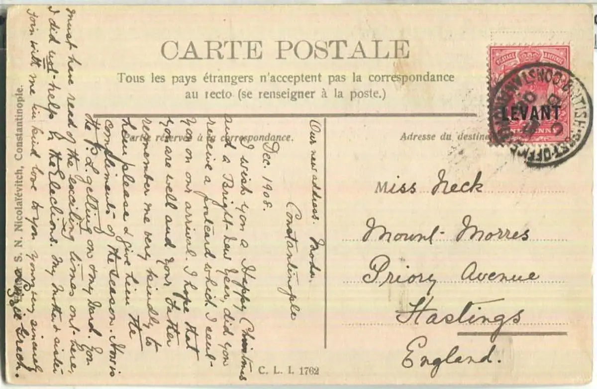Constantinople - Les eaux douces d' Europe - Edition S. N. Nicolaievitsch Constantinople - Stempelspur (E90900) gel. 1908