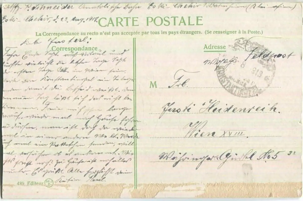 Constantinople - Les murs de Jedikoule - Feldpost - Gebrauchsspuren (E90902) gel. 1918
