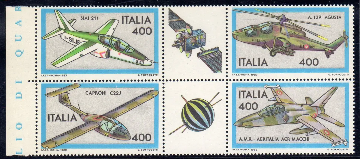 Constructions Aeronautique '83 Sorte Bewegtdruck Vollgummi MNH - Constructions Aeronautique '83 Nr. 1632/1635 die Serie im Block b. von f. mit doppeltem Aufdruck des blauen Rahmens (bewegter Druck) - Sorte noch nicht katalogisiert - Ungewöhnlich Cod. 658/15