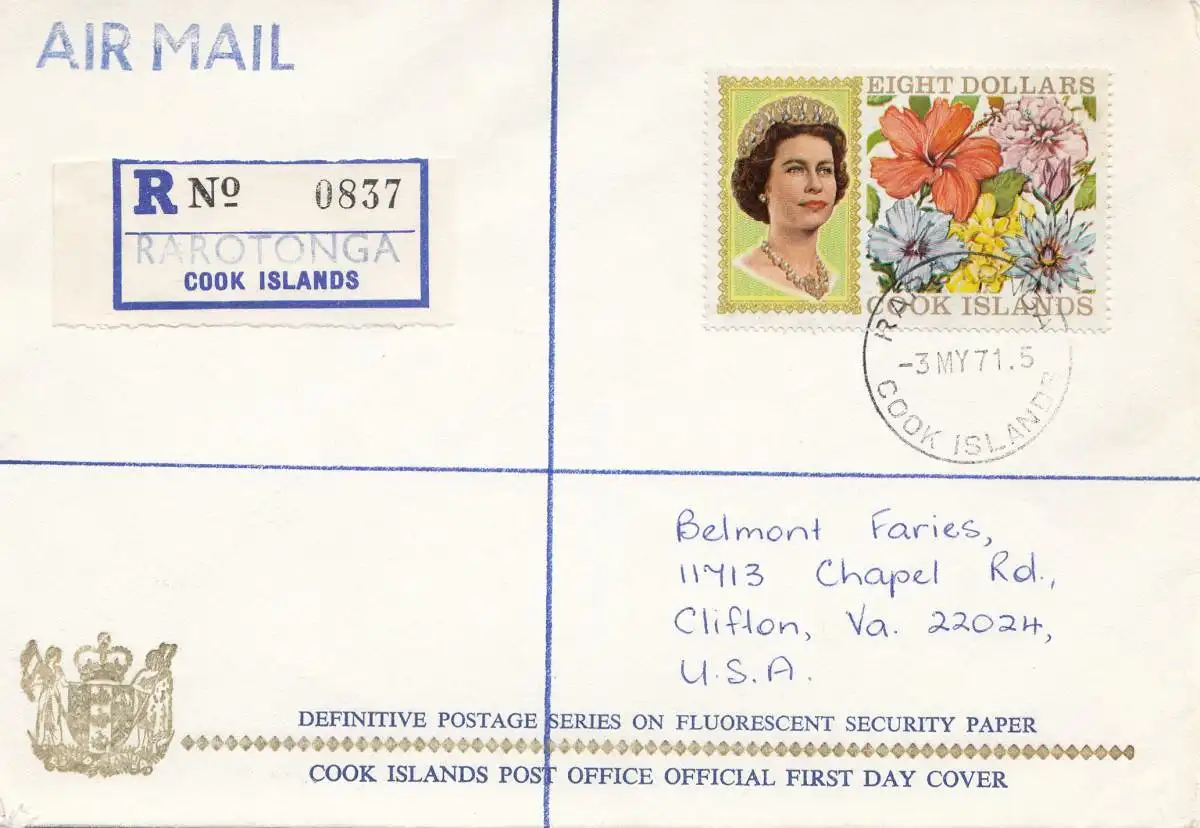 Cook Islands, Registered to USA, 1971 from Rarotonga