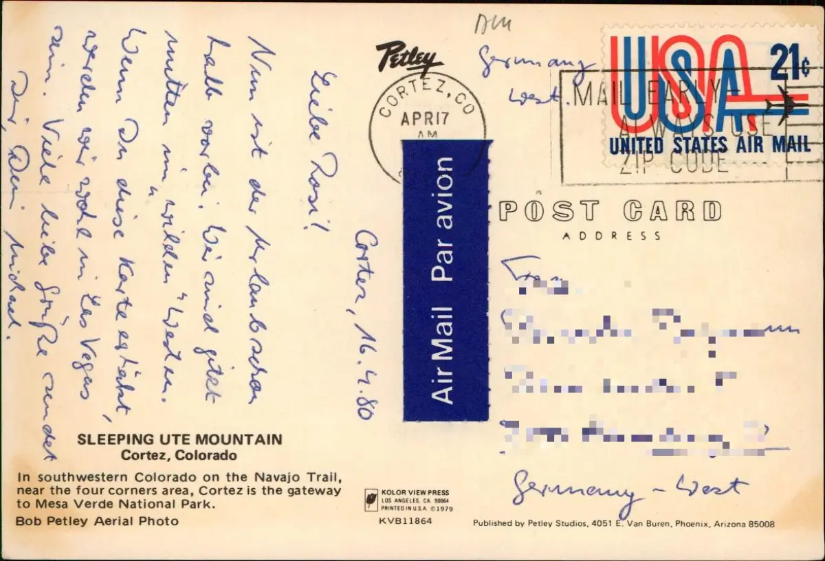 Cortez Panorama Ansicht, Aerial View, Sleeping Ute Mountain 1980