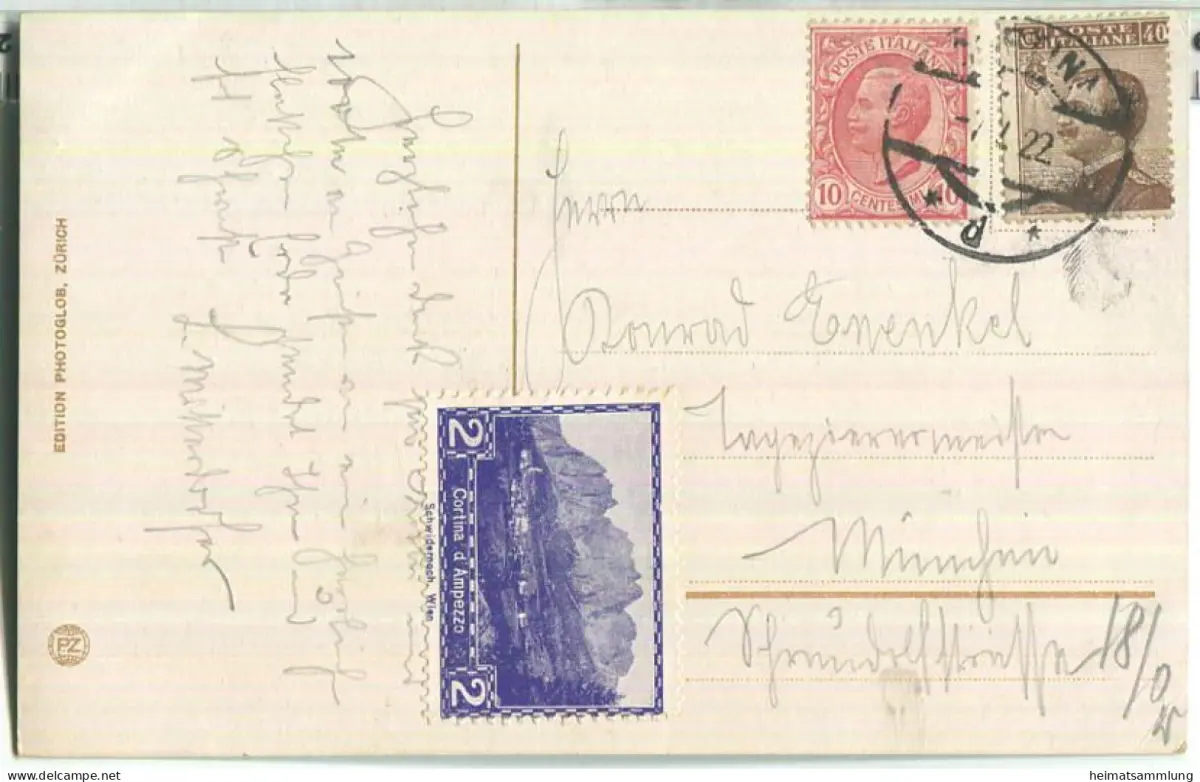 Cortina d' Ampezzo mit Dolomitenstrasse - Edition Photoglob Zürich (E88874) gel. 1922