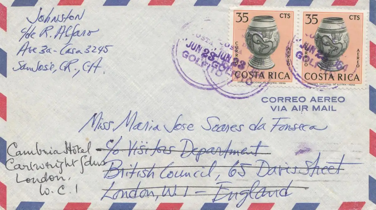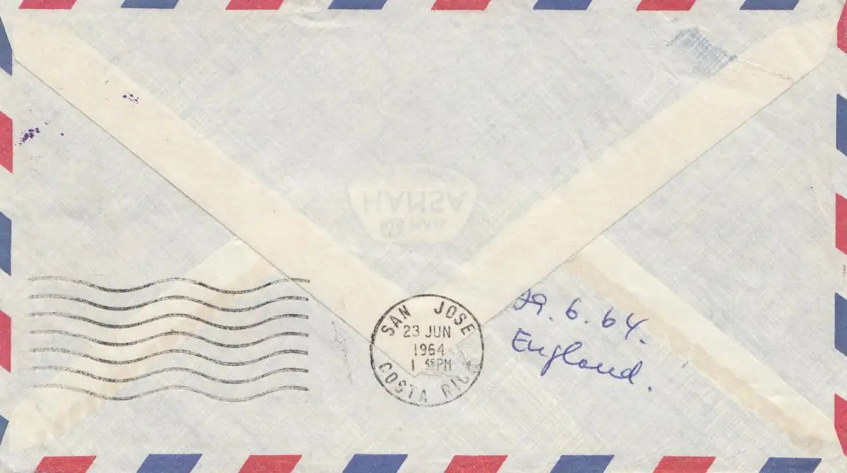 Costa Rica: 1964: San Jose to London - forwarded