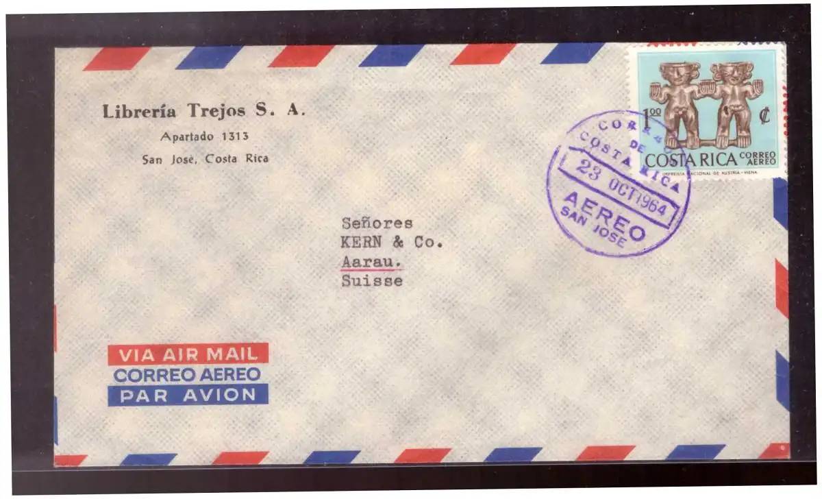 Costa Rica (020124) Luftpost Brief gelaufen nach Aarau (Schweiz) am 23.10.1964