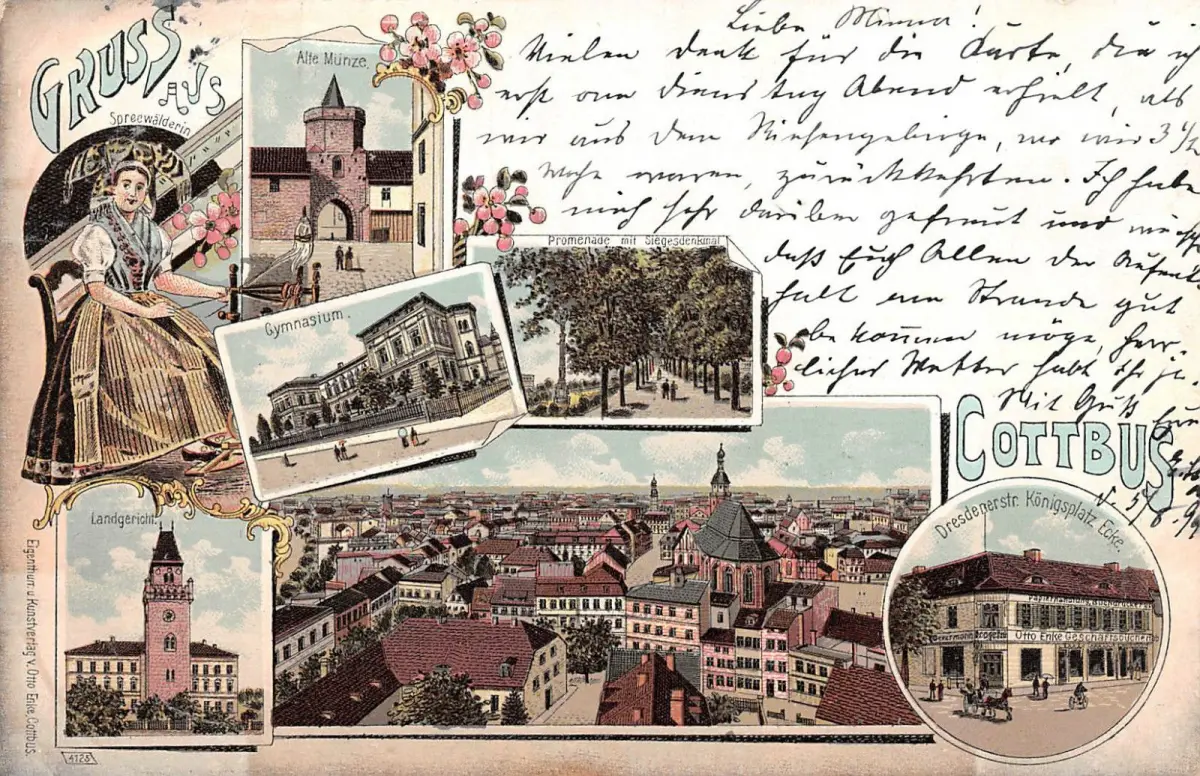 Cottbus Alte Münze, Gymnasium, Dresdenerstrasse Restaurant, Litho Postkarte 1899