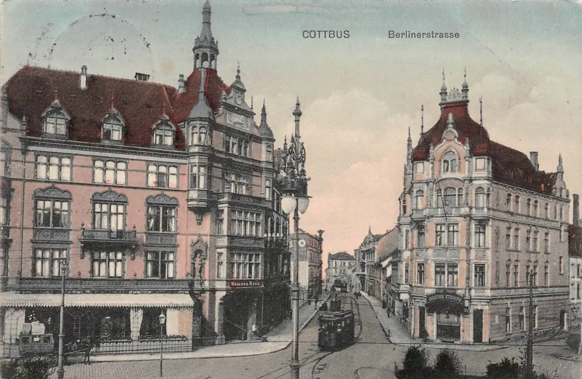 Cottbus Berlinerstrasse Strassenbahn Postkarte 1913