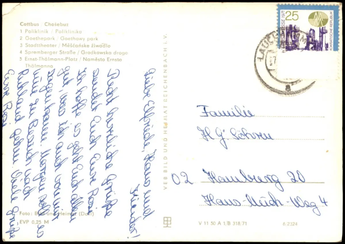 Cottbus DDR Mehrbild-AK u.a. Poliklinik, Theater, Goethe-Park uvm. 1971
