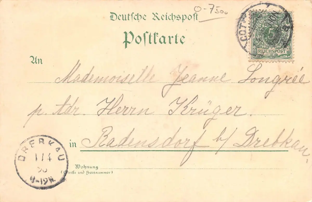 Rückseite: gelaufen 1898