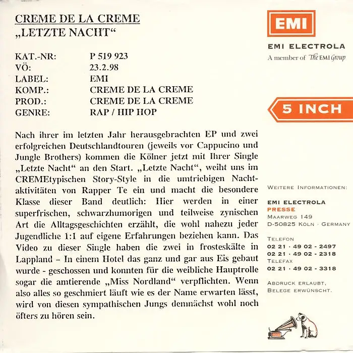 Creme De La Creme - Letzte Nacht [CD-Single]