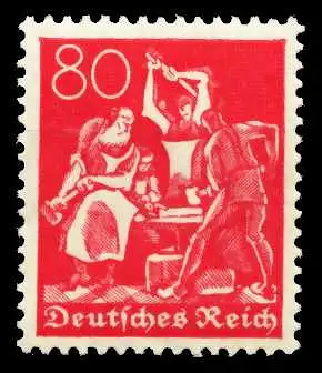 80 Pfg Wert aus der Freimarkenausgabe Ziffern, Arbeiter, Posthorn und Pflüger, Wasserzeichen Rauten