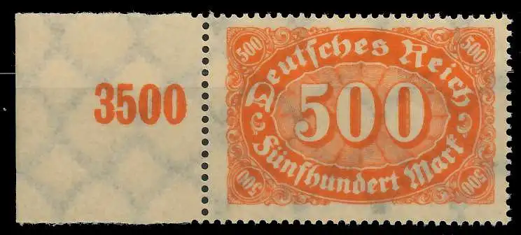 500 M Wert aus der Freimarkenausgabe Ziffern im Oval, Wasserzeichen Waffeln