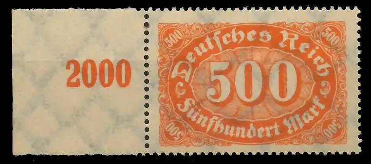 500 M Wert aus der Freimarkenausgabe Ziffern im Oval, Wasserzeichen Waffeln