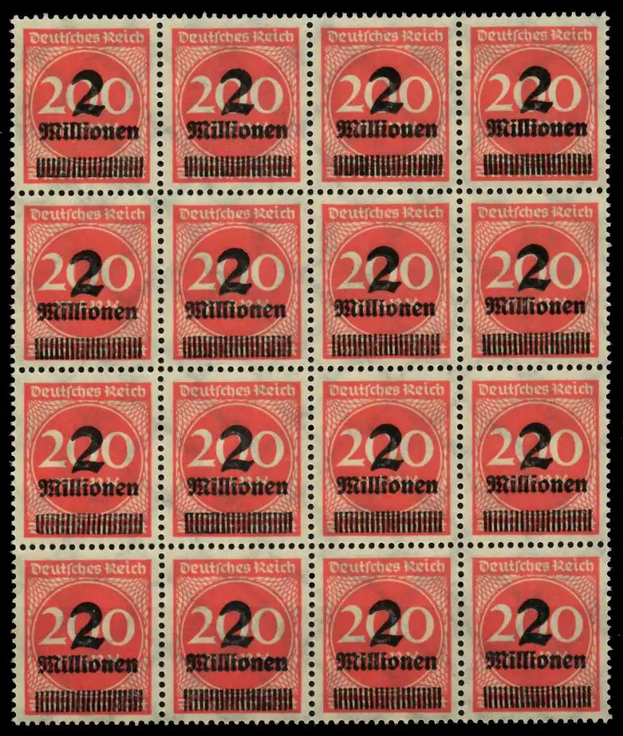 2 Mio auf 200 Mark Wert aus der Aufdruckausgabe, Ziffern im Rechteck und Ziffern im Kreis, 12er Block