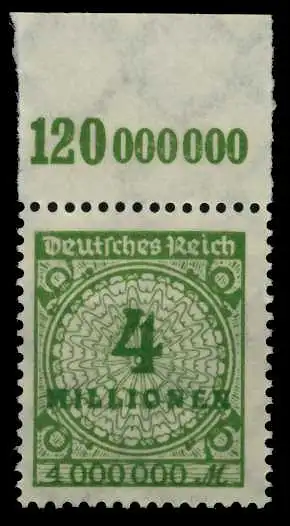 4 Mio Mark Wert aus der Inflationsausgabe Kreis mit Rosetten- (Korbdeckel) Muster, Oberrandplattentype A
