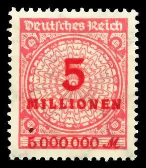 5 Mio Mark Wert aus der Inflationsausgabe Kreis mit Rosetten- (Korbdeckel) Muster