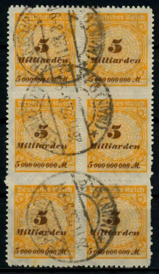 D-REICH INFLA Nr 327BP gestempelt 6er-BLOCK gepr. 7247B2