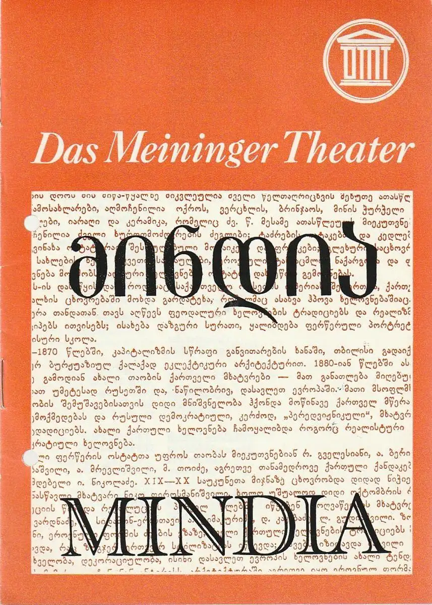 DAS MEININGER THEATER, Jürgen Juhnke, Hans Melde, Dietrich Ziebart: Programmheft Otar Taktakischwili MINDIA Premiere 12. November 1982 Spielzeit 1982 / 83 Heft 2.
