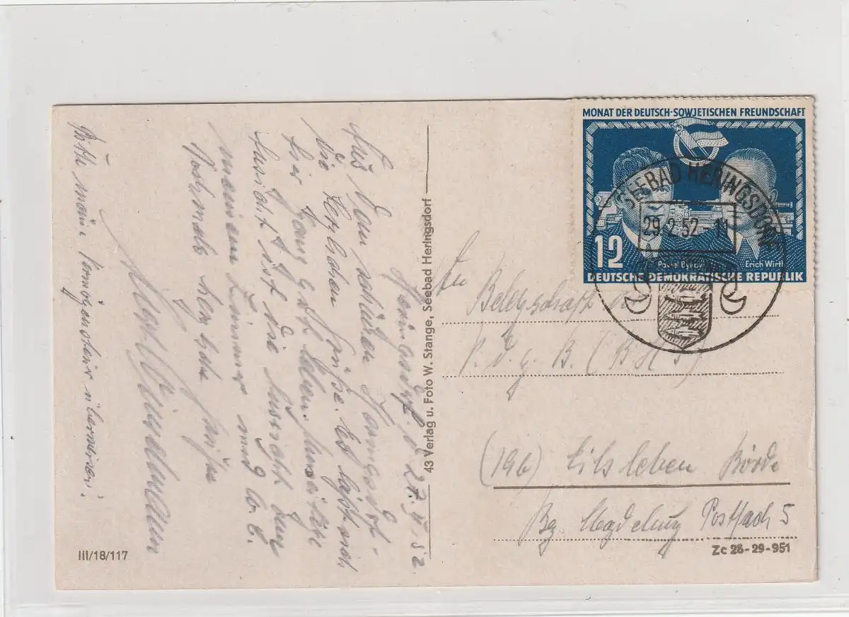 DDR: 12 Pfg. Dt.-Sowj. Frdschaft als EF auf Fotokarte Heringsdorf