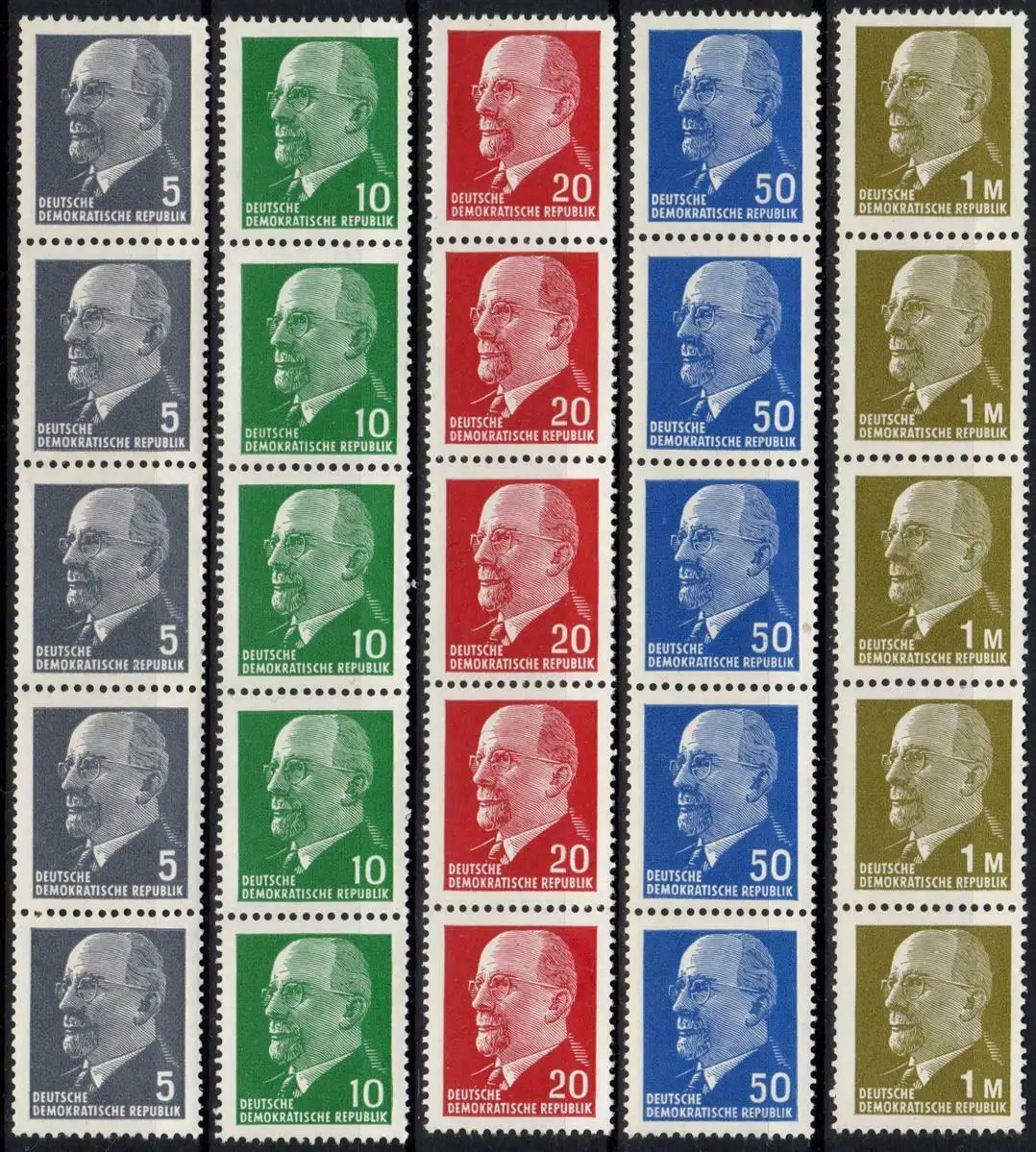 DDR: 1961, 1963, 1970, "Walter Ulbricht, 5 x Rollenstreifen (2), postfrisch
