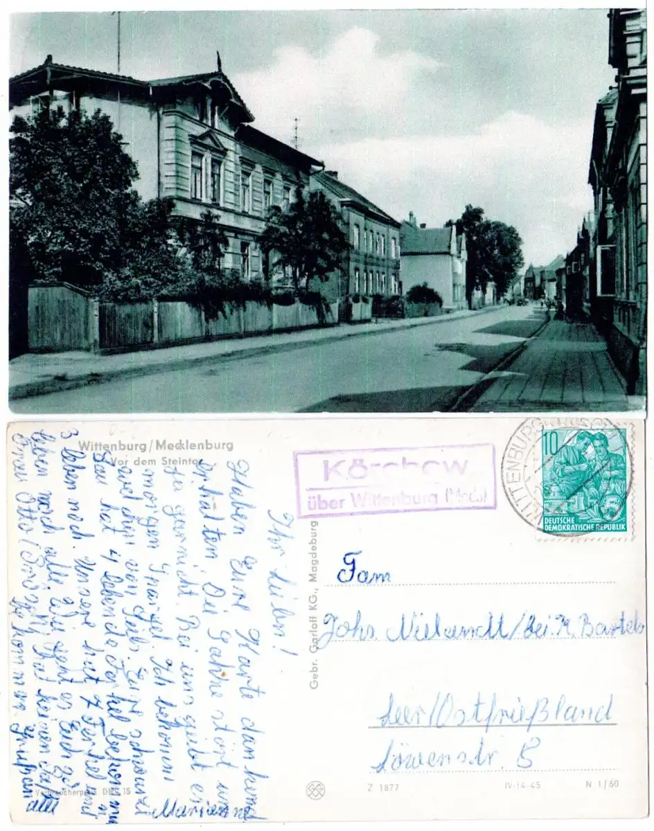 DDR 1961, Landpost Stpl. KÖRCHOW über Wittenburg auf sw-AK m 10 Pf.