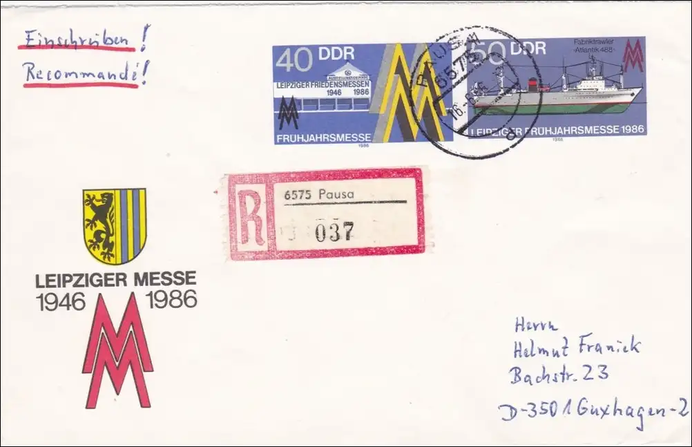 DDR: 1986 - 40 Jahre Leipziger Messe, Einschreiben von Pausa nach Guxhagen